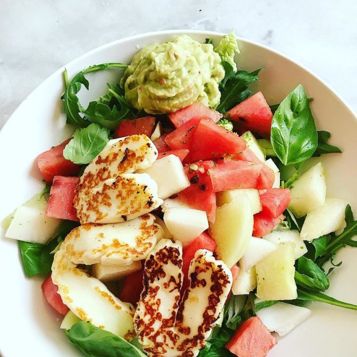 When it’s cherry season, you’ve just got to make this fantastic salad that unusually combines the saltiness of halloumi cheese with the sweetness of cherries. This makes a colorful and refreshingly delicious lunch or supper.